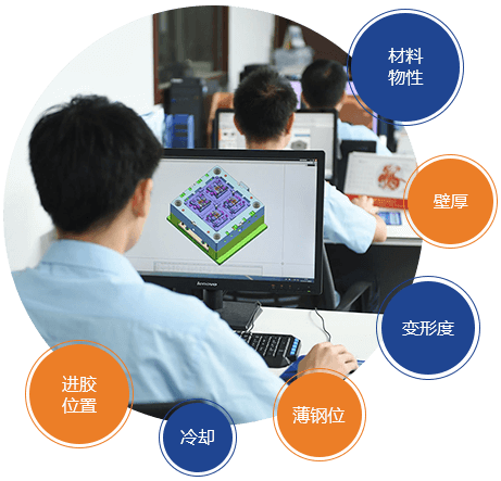 分析通過對材料物性,產(chǎn)品的可行性分析,如壁厚、變形度、進膠位置等,提前預(yù)判斷潛在問題